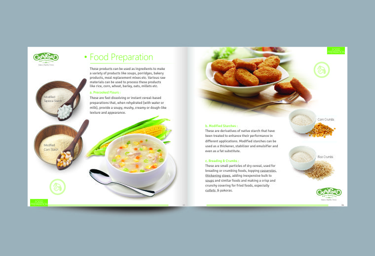 A food catalog was designed for Good Food Agro Company essentially of ten to twelve pages. This catalog contains photographs of ingredients in their original (whole) and powdered form which...